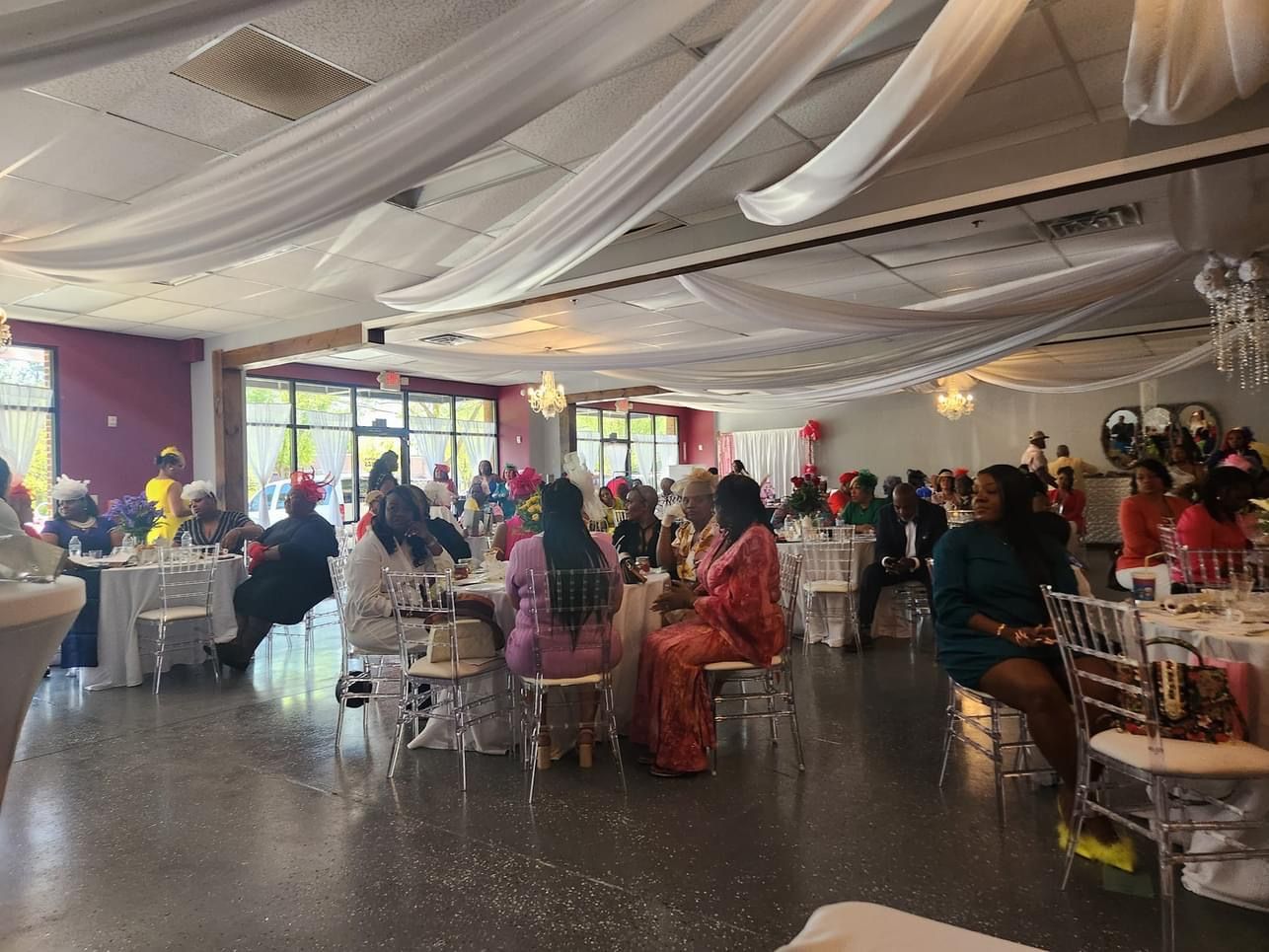 A tea party fundraiser, hosted by OES Chapter Makeda #124. The menu featured a brunch theme and entertainment included a keynote speaker, soloist, ministry mime and keyboardist. A portion of the proceeds were donated to My Sister's House, a shelter for women and children.